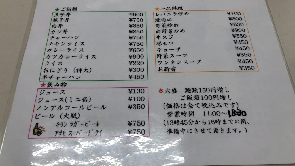 店内メニュー