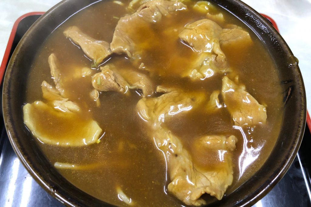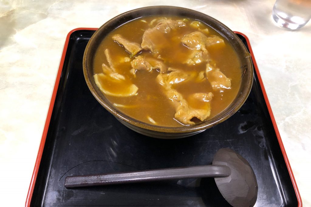 蕎麦屋で出てくる出汁にとろみをつけたものとも、ラーメンのスープにカレールーをがっちり混ぜたものとも違う不思議な味w で結構スパイシーなんですよね〜。